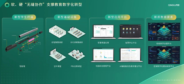 這一階段目標的實現,依賴的是軟件、硬件的無縫協作,從新型學生終端、新型基礎設施、新型應用平臺多方面入手,通過提供適切的技術功能,來支撐新質數據要素的生成。