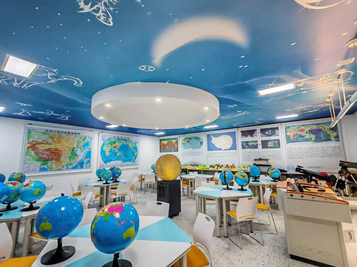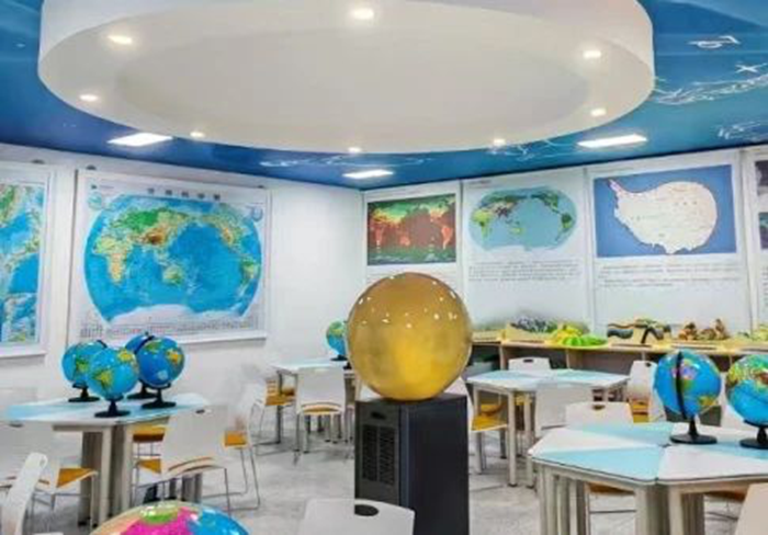 其中,最引人注目的莫過于實驗室中的多媒體球幕投影演示儀。這臺設備以其獨特的球形屏幕和高分辨率的圖像,為學生提供了一個沉浸式的視覺體驗。通過球幕投影,復雜的地理現象和抽象的地理概念變得直觀而生動。