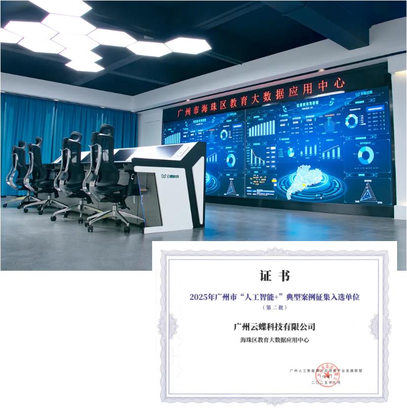 經(jīng)申報、審查、評審與復(fù)核等環(huán)節(jié),云蝶科技海珠區(qū)教育大數(shù)據(jù)應(yīng)用中心項目成功入選第二批廣州市“人工智能+”典型案例。該中心由云蝶科技與廣州市海珠區(qū)教育局、海珠區(qū)教育發(fā)展研究中心聯(lián)合打造,以大數(shù)據(jù)與人工智能為核心技術(shù),形成集采、算、管、存、用及服務(wù)于一體的數(shù)字化服務(wù)中心。