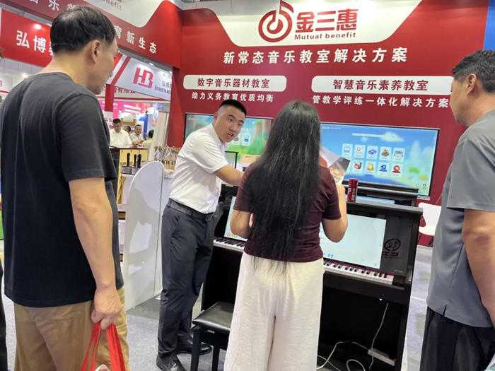 展會期間,金三惠不僅展示了產品,還積極與同行企業、教育專家展開深入交流與合作。通過現場講解與互動演示,來賓對金三惠自主研發的AI音樂課堂、智慧音樂素養教室、自動演奏鋼琴等產品表現出濃厚興趣,認為這些產品能夠切實解決當前音樂教育教學中的痛點問題,提升教育教學質量。雙方就如何將金三惠的產品更好地應用于實際教學場景進行了深入探討,為后續的合作奠定了堅實基礎。
