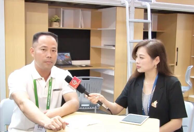 展會現場,江西啟晨教育裝備集團有限公司車間生產負責人黃明亮接受本站采訪。