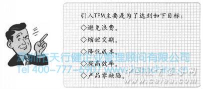 TPM管理在某些情況下甚至可以作為生產過程的一個完整部分。天行健管理咨詢公司認為這樣做就是為了將意外情況和非計劃維修工作帶來的損失降到最低限度。