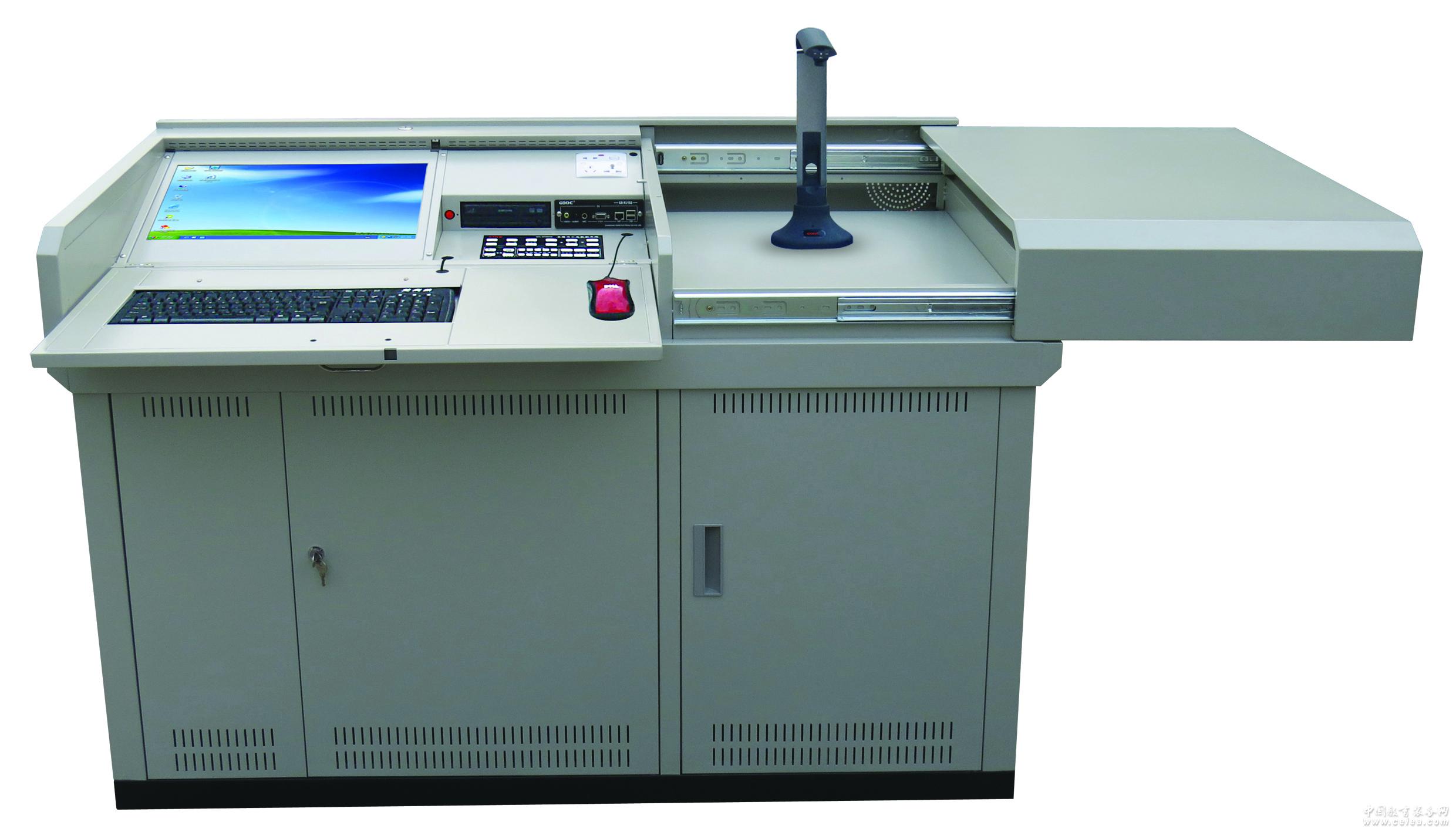 ●高的牌講臺適用范圍: 需放置臺式電腦和實物展示臺且課室比較大、要求功能比較多的學校使用。 ●高的牌講臺結構: 1、材料:防盜、防火、防靜電全鋼結構設計,表面經酸洗處理、磷化防銹后靜電噴塑,堅固耐用。 2、外形尺寸:長1400-1600×寬700×高900(單位mm)。 3、講臺結構:中央控制區設置在講臺的左邊,并設置一個保護門,打開門后,門變成一個工作臺面,電腦鍵盤鑲嵌在工作臺面上,中央控制區可以安裝15-21寸液晶顯示器(可選擇角度可調)、設有中控、外置電腦光驅、外置電源及手提電腦外接模塊的安裝位置,顯示器和臺面接口在講臺關閉狀態下均不可見。展示臺區域位于右邊。輕輕右推即可使用實物展臺;前門可隨意選擇裝大小門、對開門。 4、講臺鎖:整個講臺用一把鑰匙或1張卡打開一個鎖后便能打開講臺所有的門。 5、地臺:可根據學校講壇高度任意選配地臺。 6、安全設計:講臺邊角采用美觀的圓弧過渡,具有專業接地保護,防止設備漏電,確保使用安全。 7、安裝維護方便性:講臺后面設有專門用于安裝和檢修用的維修門,并設有理線槽,設備連線均可以在后面完成。 8、支持站立和坐下授課:支持。 ●高的牌講臺可擴展功能: 1、臺面電腦功能擴展及外接設備接口:講臺集成有電腦啟動開關、220V電源,搭載GD-WJ102外接模塊配備了USB、話筒、VGA、音視頻信號輸入接口及網絡接口。具有完善的安裝附件。 2、智能控制電源:在沒有中控的情況下,具有打開講臺門自動接通多媒體電源,關上講臺門延時4分鐘關閉整個多媒體設備電源的功能。 3、防盜報警功能:可無縫升級防盜報警系統,在講臺保管狀態下具有遇外力撬門或門未關好,投影機被人剪、拆線發出報警聲的防盜報警功能。 4、IC/ID卡管理系統:可無縫升級IC/ID卡系統,用一張卡便能輕松使用多媒體系統,內置式IC/ID卡讀卡器,外形美觀、性能更穩定、安全。 5、臺面燈光控制系統:可升級臺面燈光控制系統。 6、組合式安裝機柜:選配結構緊湊的組合式安裝機柜及電腦主機固定架(可根據電腦主機調節合適高度),組合式理線架、理線槽,講臺內設備安裝維護時拆卸方便,干凈整潔,線條流暢。 |