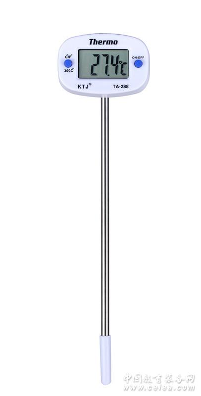 使用方法: 開機:按ON/OFF按鍵 測試溫度:將探針插入被測物體中部 讀數:將表頭調至最佳可視位置,數秒鐘后屏幕顯示的數字即為準確溫度。 注意事項: 請勿用本品測試溫度超過300℃以上物體。 本產品使用完畢時,請用溫水或中性清潔劑清洗,并將探針插入膠套, 請勿將表頭浸入水中清洗。 適用范圍: 探針溫度計度設計小巧,攜帶方便,適合測量產品的中心溫度,還可以替代傳統的玻璃溫度計的用途。它的探針前端非常尖銳,可以直接刺進一些食品中測量中心溫度,反應快速。儀器外殼采用ABS工程塑料密封,經久耐用,表面光滑,使用觸摸按鈕,起到防水、防油脂、易清洗。特點:°F/°C 雙模式 ;比傳統溫度計測量速度快3倍;LCD液晶顯示當前溫度。 用途: 用于測量液體、流質物體、非堅硬性固體溫度,也可測量環境的溫度。本產品可直觀準確的測量煮食、加熱、解凍、飲料、實驗室、食品廠、快餐店、學校實驗室、家庭等場所常用。 |
