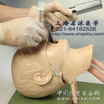 功能特點: ■ 逼真的兒童口、咽、氣管等解剖結構。 ■ 可經口、鼻氣管插管。 ■ 兒童頭頸可后仰,以便開放氣道。 ■ 可以通過吹氣方式,測試插管位置是否正確。