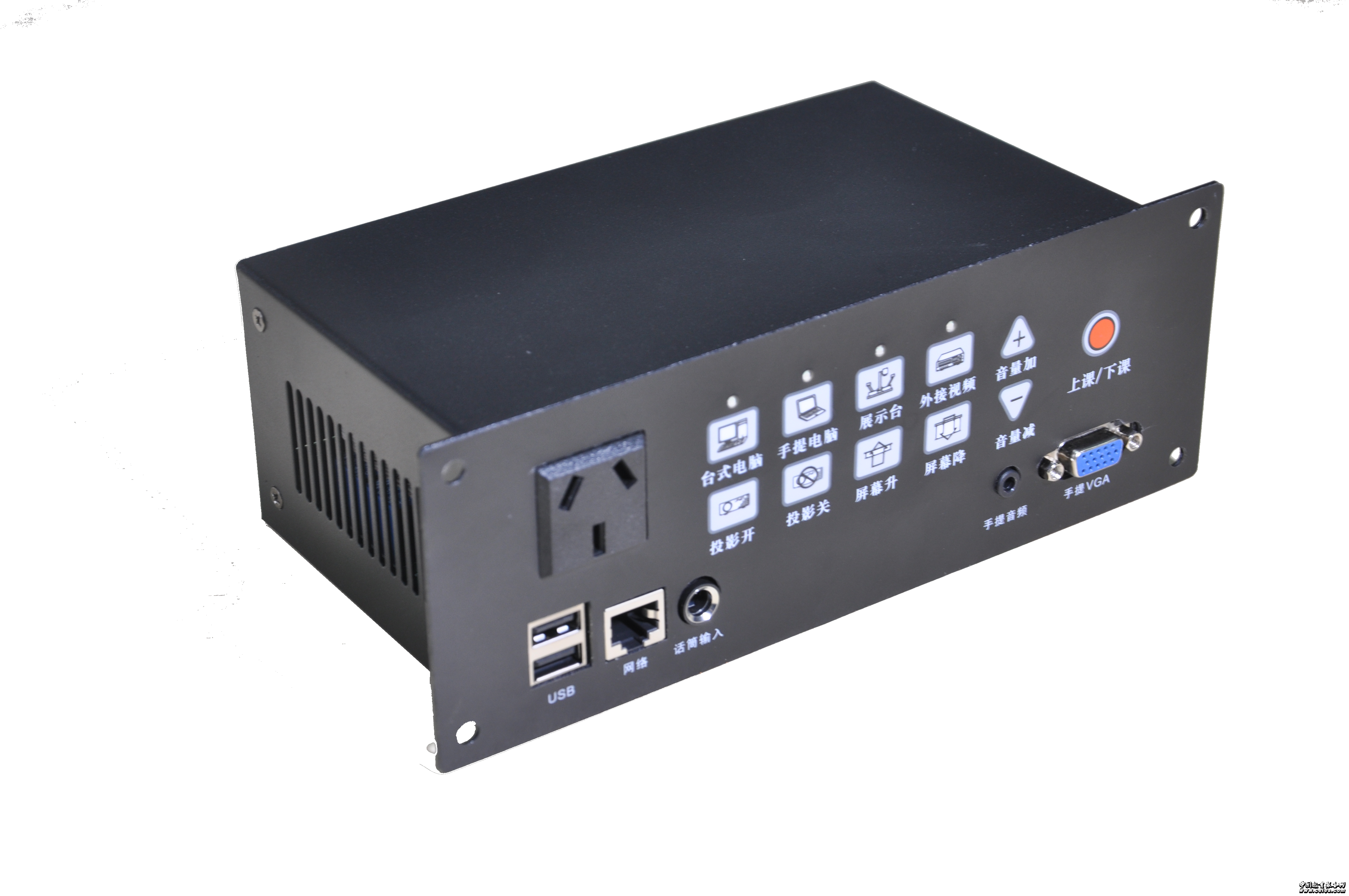 產品詳細介紹一鍵式上/下課;自動延時斷電功能。 內置VGA切換矩陣,帶400MHZ長線驅動器,充分保證遠距離傳輸質量,支持臺式電腦、筆記本電腦、數字展示臺 等數字接口的輸入。 內置音視頻矩陣,模擬音視頻信號輸入,模擬視頻輸出頻寬高達250MHZ,音頻信號輸入,路輸出強電控制管理,投影機開關與電動屏幕聯動。 自帶投影機保護功能、檢測投影機燈泡的工作情況,并且自動延時斷電,更好的保護投影機的壽命超長壽命薄膜式按鍵,防水防塵、帶切換信號指示燈。 可編程RS-232控制接口,連接控制投影開關及信號選擇,內置超過36種投影232碼,通過8位撥位開關即可控制 投影,無需通過電腦寫碼,方便操作設置,更換投影也無需重新寫碼。 獨立紅外輸出,內嵌式紅外學習模塊,可紅外自學習控制投影機,無須配置專業學習器,使用更簡單,學習更可靠。 內置高保真無極音量調節。 控制界面,網絡接口、USB接口、話筒接口,220V電源接口。 中控支持電腦軟件操作、面板操作。 采用專用電源,輸入12V/2A,性能更加穩定。 可導入導出紅外碼、232碼,方便保持及批量安裝。 |