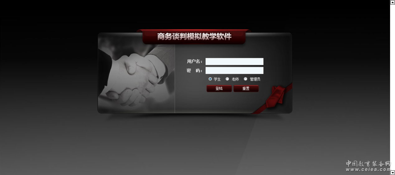 3、學生 學生可以通過該系進行課程資料學習、商務(wù)英語學習、商務(wù)禮儀學習、商務(wù)談判實戰(zhàn)、商務(wù)函電談判等相關(guān)學習和實習實訓。