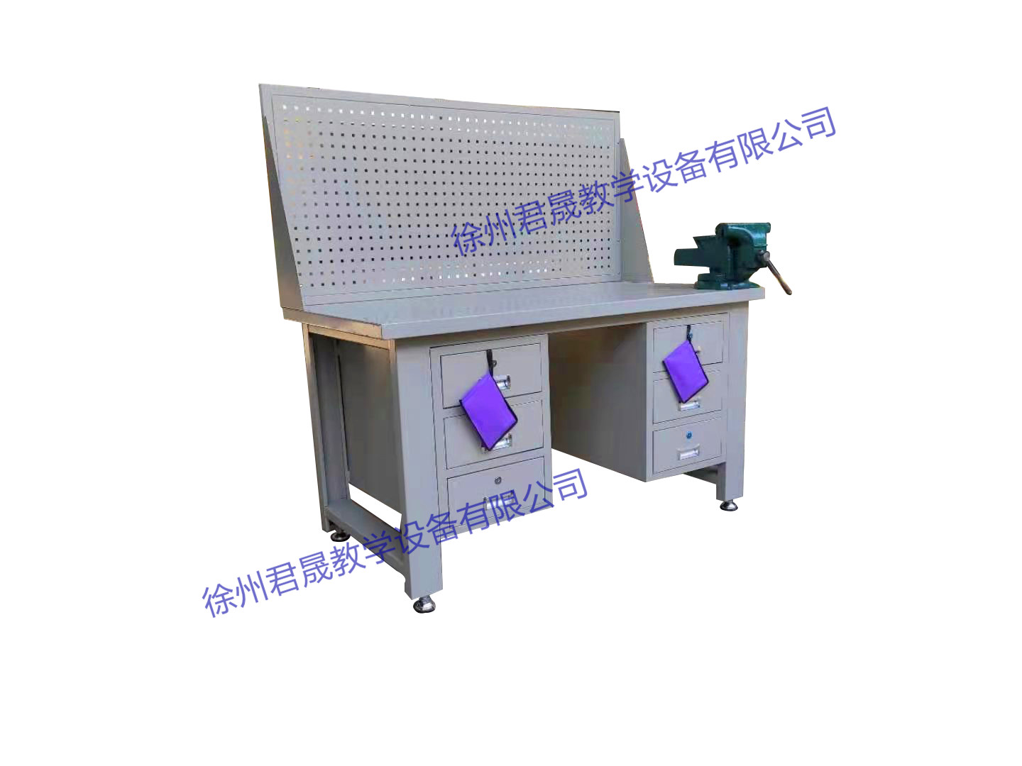 產品詳細介紹概述: 本公司生產鉗工實驗室設備根據教學要求與多家工廠共同開發生產,該產品配備的鉗工工具通用化,標準化和專用化,可提高學生的操作技術和動手能力。鉗工大多是在鉗工臺上用手工工具操作,對工件進行加工。手工操作的特點是技術性強,加工質量的好壞主要取決于操作者技術水平的高低,它的工作范圍較廣,具有萬能性和靈活性的優勢且不受設備、場地等條件的限制,因此凡是采用機械加工方法不太適宜或難以進行機械加工的場合,通常由鉗工來完成,尤其是機械產品的裝配、調試、安裝和維修等更需要鉗工,所以說鉗工不僅是機械制造工廠中應用最廣泛的工種之一,因此鉗工實驗室設備也是各大院校,技校不可缺少的實訓教學產品。 鉗工:鉗工大多是用手工工具并經常在臺虎鉗上進行手工操作的一個工種。 鉗工的主要任務: 加工零件:一些采用機械方法不適宜或不能解決的加工,都可由鉗工來完成。如:零件加工過程中的劃線,精密加工(如,刮削 挫削樣板個制作模具等等)以及檢驗及修配等。 裝配: 把零件按機械設備的裝配技術要求進行組件,部件裝配合總裝配,并經過調整,檢驗合試車等,使之成為合格的機械設備。 設備維修:當機械在使用過程中產生故障,出現損壞或長期使用后精度降低,影響使用時,也要通過鉗工進行維護合修理。 工具的制造和修理:制造和修理各種工具,卡具,量具,模具和各種專業設備。 鉗工各項操作技能: 劃線,鏨削,鋸削,銼削,鉆孔,擴孔,锪孔,鉸孔,攻螺紋,套螺紋,矯正和彎形,鉚接,刮削,研磨,機器裝配調試,設備維修,測量和簡單的熱處理。 鉗工的主要工具: 鉗工主要是以 銼刀 鉆 鉸刀 老虎鉗 臺虎鉗 車床 銑床 磨床為主的工具進行裝配和維修的技術工人 。 鉗工的種類: 鉗工(普通鉗工):對零件進行裝配,修整,加工的人員。 機修鉗工:主要從事各種機械設備的維修修理工作。 工具鉗工:主要從事工具,模具,刀具的制造和修理。 鉗工臺主要參數: 鉗工臺的規格:1500mm長×750mm寬×800mm高(桌面高800mm+防護網700mm)。 防護網規格1500×700×30mm沖孔金屬鋼板,帶加強筋。 臺面采用雙面結構,即4個操作工位共用一個平臺。以節約成本和空間。 臺面材料采用50毫米刨花板(或松木)覆1.5mm厚鋼板(表面應防銹處理)。 桌架采用60*60*1.5mm方鋼焊接而成, 抽屜采用1.0mm鋼板,桌面鐵皮全部包起來 .抽T每個可以承重25KG. 鉗工實驗室(一張桌2座/組)每組詳細配置如下: 可以完成常用工具的認識和使用,錘、鋸、銼、鑿、劃線、裝配、調試、安裝、維修等教學工具。 序號 名 稱 規 格 單位 數量 1 鉗工桌 1500×750×800mm 張 1 2 臺虎鉗 5寸 臺 2 3 鋼鋸架
