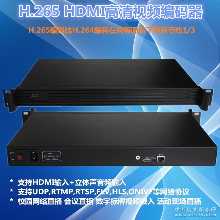 產(chǎn)品詳細介紹產(chǎn)品概述: BM3510-HDMI高清編碼器是深圳市優(yōu)立信公司自主研發(fā)生產(chǎn)的一款專業(yè)的高性能高清音視頻編碼,主要用于校園局域網(wǎng)直播或者配合流媒體服務(wù)器做廣域網(wǎng)直播等,該產(chǎn)品具有1路HDMI音視頻輸入接口,采用H.265編碼格式,可同時對視頻音頻進行編碼。輸出TS雙碼流設(shè)計,可根據(jù)不同需要設(shè)置每一路的輸出碼流分辨率,該設(shè)備具有高集成,低成本的優(yōu)勢,可廣泛應(yīng)用于各種數(shù)字電視播出系統(tǒng)中。。全面支持VLC解碼操作。