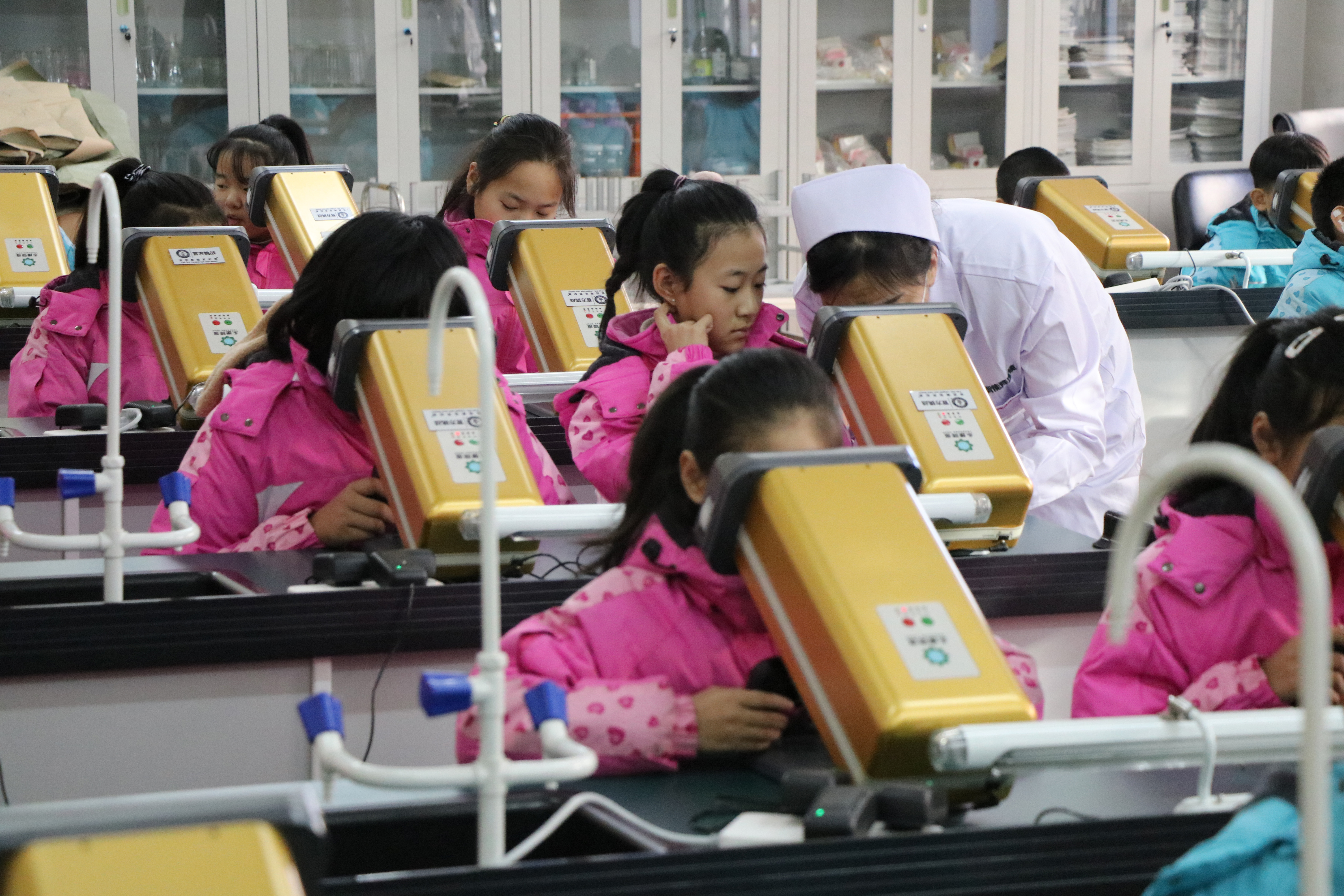 學生近視防控教室,是永康視光科技集團在多項重大發明基礎上的集成創新。學校拿出一間教室,放置30-50臺永康視力提升機,學生按班級建制每周進行一次20-40分鐘的訓練,一般經過1-2個月5-10次訓練,會達到裸眼視力平均提升2行,近視率平均下降10%以上的良好效果。2018年11月、12月以及2019年1月,永康集團在沈陽市工人村第一小學、文藝二校教育集團文藝一校、朝陽一校、六一小學、南京九校等5所學校先后建立了學生近視防控教室,取得了良好效果。目前,北京市海淀區、西城區、遼寧省大連市、內蒙古烏蘭浩特市等地區,都在與永康視光集團合作,開展學生近視防控教室試點工作,并逐步在當地全面推廣。