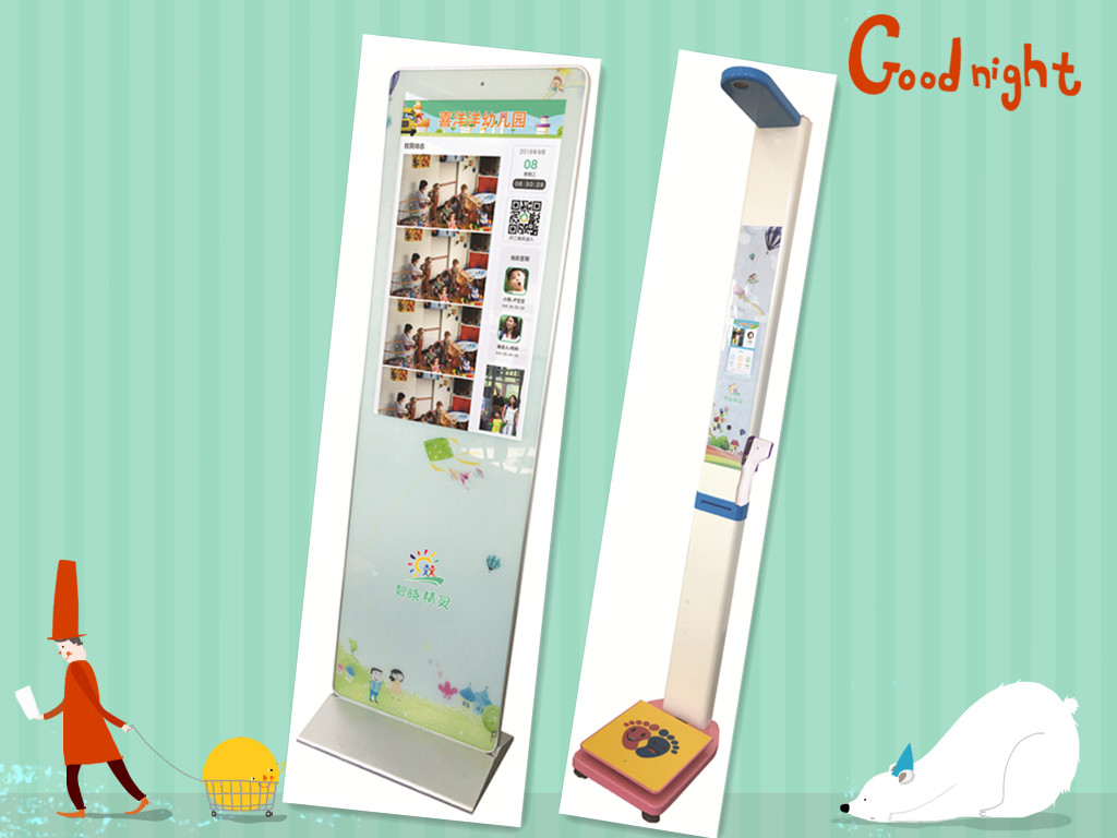 產品詳細介紹家長人臉識別接送機與智能晨檢機測量身高體重體溫實時發送家長小程序,小程序含寶寶個人相冊和班播,班級動態,學校公告,食譜,課程等。分為家長端教師端
