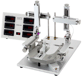 該儀器由KOPF標(biāo)準(zhǔn)堅固“U”型臂裝配而成,“U”型臂上裝有兩個961超精確微操作臂。同時配有1770電極夾持器(帶V形夾)。 橫向與縱向滑尺被安裝在一個巨型萬用連結(jié)器上,該連結(jié)器校準(zhǔn)在“U”型臂兩翼。 |