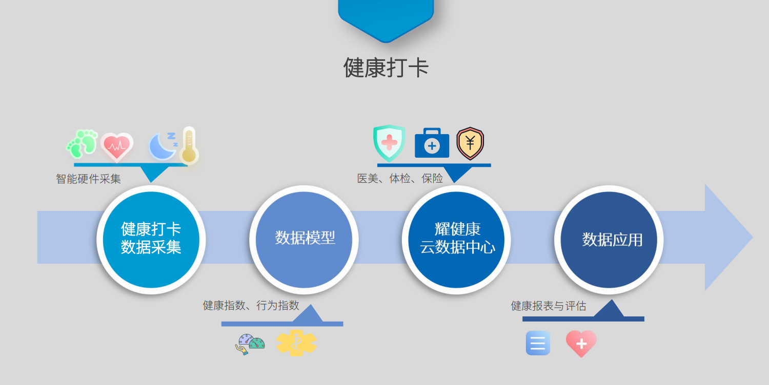 未來,耀健康APP還會提供及時的行業資訊,政策解讀,供商家參考,以及各種集運動、飲食、女性、睡眠等等全方位的信息,豐富用戶的知識,滿足用戶的需求。云尚互聯智能設備產品開發后,通過整合上下游供應鏈,構建一條線服務模式,通過多維度的擴展,打造大健康生態圈。健康數據應用到線下體檢中心、醫院、保險等,讓所有用戶都能享受可視化、一體化的健康管理服務。
