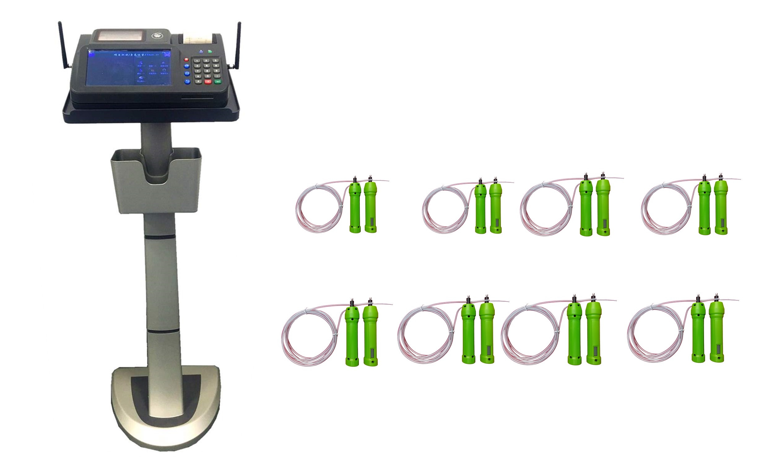 產品詳細介紹單機部分: 1、自動測量學生一分鐘的跳繩個數,通過一分鐘跳繩測試反應學生的下肢爆發力和身體協調能力 2、★跳繩子機可以作為電子型單機單獨測試使用,具有蜂鳴器提示音功能,可以設置測試時間。跳繩手柄采用2節7號電池供電方式 3、標準配置是10人同時測試,最多可同時進行30人跳繩測試 4、主要技術參數: 次數:1-9999次 計時:0分0秒-30分00秒 計數誤差:±1個 主機部分: 1)主機采用原生Android系統,能夠安裝APK程序以拓展使用功能及產品升級(可現場演示),屏幕≥7吋彩色觸摸電容屏;主機≥1.0GB以上運行內存;≥8GB FLASH存儲空間。 2)★主機具有TF卡槽支持TF擴展32G,具有可進行功能性擴展的DB9的RS232接口,主機具有雙攝像頭,主機具有音頻接口可外接擴音器。 3)★主機具備互聯網的網線插口和WiFi模塊,可插入手機SIM卡進行聯網操作。 4)★主機具有內置二維碼掃描器(嵌入式非外接型),通過主機自動掃描二維碼進行身份識別、驗證,減少備件的損耗,使用方便快捷。主機內置打印機,自動打印測試數據。 5)★主機具備≥1個迷你USB口,≥2個USB標準接口(非外接擴展),可直接插入U盤導入100000條測試名單信息,也可直接導出測試成績至U盤自動生成Excel的AES加密表格(確保數據安全性)。 6)★主機具多種身份識別功能:可通過觸摸屏輸入、機械鍵盤輸入、非接觸式IC卡、二維碼掃描等識別方法,可定制身份證識別;輸入學號具備自動遞增功能;主機菜單具備單項查詢,集體查詢,分組查詢等多種篩選數據方式,查詢便捷。可以導入評分標準,對測試結果實時評分。 7)★可從U盤導入信息中批量選擇測試人員信息(可按照學校、年級、班級進行隨意選擇添加) 8)★具備操作提示音及語音播報成績的功能,同時具備手工輸入成績的功能(無需儀器配合,可以用于修改個別有爭議的測試者成績) 9)★具備統計功能:合格率、平均值、排名等(可按照學校、年級、班級進行隨意統計) 10)主機具備根據客戶需求自定義分組管理信息,比如區縣、學校、年級、班級 11)主機查詢結果能一屏同時顯示測試學校、年級、班級、學生姓名、性別、測試成績、測試日期及時間,方便后期督查。 12)主機具備多重數據存儲備份功能,具有數據一鍵恢復功能。 |