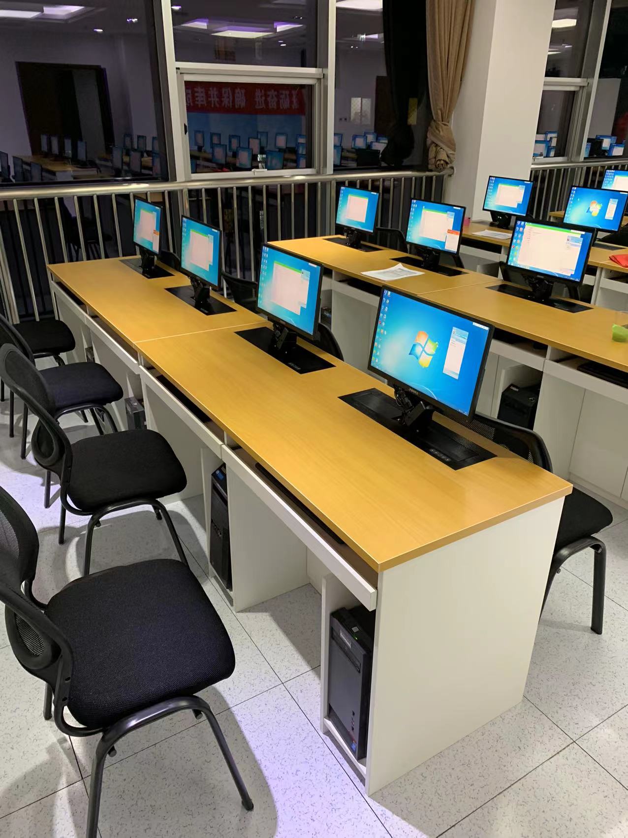 產(chǎn)品詳細(xì)介紹本產(chǎn)品根據(jù)需求定制,具體價格請電話咨詢 參數(shù): 1、顯示器電動升降桌尺寸:長1600mm*寬600mm*高760mm,桌面安裝顯示器隱藏設(shè)備,考試時顯示器可自動從桌面里升出來,不用時可自動隱藏到桌面內(nèi),實現(xiàn)一桌兩用,一室多用,升降模式采用電動升降,可一鍵控制所有顯示器升起、降落,升降設(shè)備可安裝17-24寸液晶顯示器。 2、桌面采用25mm厚實木顆粒板,表面貼免漆飾面,環(huán)保無味,符合國家E1級環(huán)保標(biāo)準(zhǔn)。 3、桌體采用金屬結(jié)構(gòu),側(cè)腿厚度≥20mm厚,內(nèi)部中孔,表面帶造型孔,腿前安裝金屬柜門,柜門上加鎖,帶散熱孔,整張桌體采用≥1.0冷軋鋼板經(jīng)過激光切割、折彎、焊接成型,表面靜電噴涂。(顏色可根據(jù)房間定制)桌體可根據(jù)需求定做鋼架結(jié)構(gòu)和板材結(jié)構(gòu)。 4、桌腿內(nèi)部安裝存放主機和和插排。 |