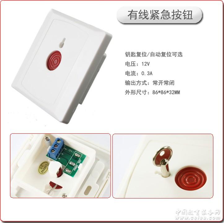 功能特點/技術參數: 緊急按鈕是用在發生緊急情況時及時觸發報警的器材, 可安裝在容易觸摸的地方。一般家庭安裝在臥室床頭或大廳容易觸摸到的地方。