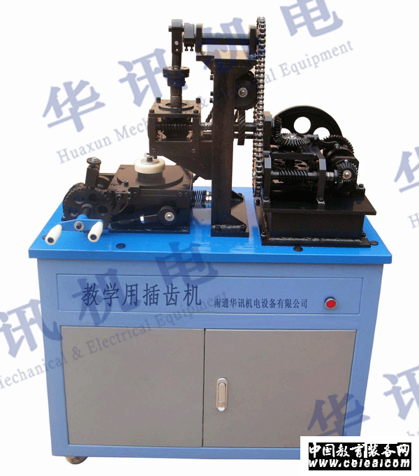 產品詳細介紹HX-JCJ 教學用插齒機 技術參數 1、輸入電源:單相三線 AC220V±10% 50Hz; 2、插刀m=3 z=19 3、電機轉速1500r/min 4、交流電機120W 5、毛坯件:Φ80×16,材料要求為工業蠟。 6、外形尺寸:650×400×600 實驗目的 1、加深對范成法加工齒輪的理解 2、了解各種傳動副的結構特點和用途,加深對各種類型的機械傳動的感性認識和理論認識; 3、通過拼裝對比分析不同的傳動特點,提高學生動手能力和創新意識,培養學生工程實踐能力和創新能力。 性能特點: 1、同時展示帶傳動、鏈傳動、直齒齒輪傳動、斜齒齒輪傳動、錐齒齒輪傳動、蝸輪蝸桿傳動、凸輪傳動、棘輪傳動、平面連桿機構等多種傳動方式,做到使學生開拓視野、發散思維的目的 2、工藝精致,采用可視化設計,構造通透、直觀,能使學生在短時間內熟悉操作并了解模型結構、傳動動作和工作原理