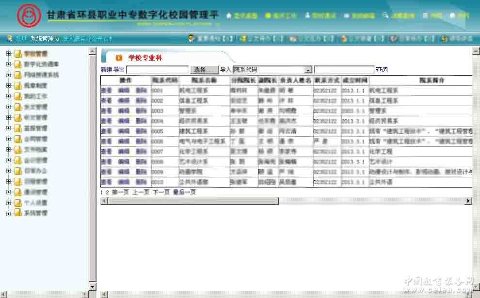 北唐數(shù)字化校園功能:公共平臺(tái)、門(mén)戶網(wǎng)站、網(wǎng)絡(luò)授課系統(tǒng)、數(shù)字化資源庫(kù)、人事管理系統(tǒng)、資產(chǎn)管理系統(tǒng)、學(xué)生學(xué)籍管理系統(tǒng)、教務(wù)管理系統(tǒng)、教學(xué)管理信息系統(tǒng)、試題庫(kù)管理系統(tǒng)、OA協(xié)同辦公管理、綜合事務(wù)、部門(mén)事務(wù)、個(gè)人辦公、公共信息、在線學(xué)習(xí)、系統(tǒng)接口、科研管理系統(tǒng)、系統(tǒng)管理 .
