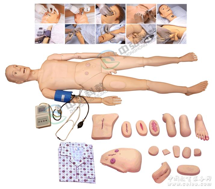 產(chǎn)品詳細(xì)介紹一、特點(diǎn) 高級(jí)全功能護(hù)理人訓(xùn)練模型是根據(jù)臨床基礎(chǔ)護(hù)理操作與實(shí)習(xí)護(hù)理技術(shù)大綱的要求,經(jīng)專家研討后由我公司開發(fā)研制的最新產(chǎn)品增加了血壓測量操作練習(xí)。該產(chǎn)品綜合了基礎(chǔ)護(hù)理與外科護(hù)理的主要功能。 本模型由進(jìn)口PVC塑膠材料,經(jīng)模具澆模工藝制成。具有形象逼真、操作真實(shí)、拆裝方便、結(jié)構(gòu)合理和經(jīng)久耐用等特點(diǎn)。還可以拆裝分部件進(jìn)行局部功能教學(xué)訓(xùn)練。是目前國內(nèi)最先進(jìn)、功能齊全、材料講究的全新高級(jí)護(hù)理訓(xùn)練模型。 二、產(chǎn)品功能: 1、頭部護(hù)理:洗頭、洗臉。2、眼、耳滴藥水清洗。3、口腔護(hù)理。4、氧氣吸入法。6、氣管切開護(hù)理 7、可進(jìn)行口腔直接氣管插管操作訓(xùn)練。8、洗胃法。9、胸腔解剖重要器官結(jié)構(gòu)觀察。10、手臂靜脈注射、輸液、輸血訓(xùn)練。11、三角肌皮下注射。12、大腿、臀部肌肉注射。13、男、女性導(dǎo)尿術(shù)。 14、男、女性膀胱沖洗。15、灌腸法。16、會(huì)陰護(hù)理。17、造瘺引流術(shù)護(hù)理。18、胸、腹部穿刺訓(xùn)練 包括胸腔、腹腔、肝臟、骨髓和腰椎穿刺。①胸腔穿(在左側(cè)肩胛線第7-8肋間,避免在第9肋間以下穿刺);②腹腔穿刺(在下腹部臍與髂前上棘連線中外1/3交點(diǎn)處)(暫缺);③肝臟穿刺(在右側(cè)腋中線第8-9肋間,深度不超過6cm)(偏高);④骨髓穿刺(在左側(cè)髂前上棘后方1-2cm處);⑤腰椎穿刺(在第3-4腰椎棘突間隙,成人進(jìn)針深度為4-6cm,髂嵴最高點(diǎn)平第4腰椎棘突)。 19、胸腔解剖重要器官結(jié)構(gòu)觀察 20、整體護(hù)理:床上擦浴、座式擦浴、穿換衣服、冷、熱療法 21、創(chuàng)傷護(hù)理:消毒、換藥、止血、包扎 (1)、大腿皮膚裂傷(消毒、清洗) (2)、大腿感染性潰瘍(消毒、清洗、換藥) (3)、足壞疽,第1、2、3足趾和足跟壓瘡(褥瘡) (4)、上臂截肢殘端(供包扎訓(xùn)練) (5)、小腿截肢殘端(供包扎訓(xùn)練) 三、可進(jìn)行血壓測量練習(xí)(功能特點(diǎn)) 1、血壓測量訓(xùn)練模式及考核模式,收縮壓、舒張壓及心率參數(shù)可自行設(shè)定 2、技術(shù)指標(biāo):①設(shè)定收縮壓范圍:80-200mmHg ②設(shè)定舒張壓范圍:50-120mmHg ③心率設(shè)定范圍:50-140次/分 五、血壓測量訓(xùn)練模式及考核模式 1.血壓測量訓(xùn)練模式 使用方法: ⑴ 將手臂模型與訓(xùn)練儀連接并設(shè)置收縮壓、舒張壓和心率值。 注意:使用時(shí),如果發(fā)現(xiàn)訓(xùn)練儀所測壓力值與壓力表指針讀數(shù)偏差較大,請(qǐng)進(jìn)行壓力校正以保證訓(xùn)練的準(zhǔn)確性。 ⑵ 將手臂模型水平放置,手心向上,血壓表平放在桌面上,排盡袖帶內(nèi)的余氣,平整地纏繞在肘關(guān)節(jié)上方2厘米處,松緊以能放入一指為宜。 ⑶ 戴上聽診器,將聽診頭緊貼在肘關(guān)節(jié)上方上臂內(nèi)側(cè)肱動(dòng)脈處,關(guān)緊氣門,握住手球往袖帶內(nèi)打氣至160mmHg左右(正常人舒張壓<130mmHg),然后緩慢打開氣門放氣,使指針緩慢下降,當(dāng)聽到聽診器中的第一聲響亮搏動(dòng)聲,血壓表指針?biāo)甘镜目潭燃创硎账鲏骸@^續(xù)放氣,搏動(dòng)聲繼續(xù)存在并放大,當(dāng)搏動(dòng)聲突然消失時(shí),此時(shí)指針?biāo)甘镜目潭燃创硎鎻垑骸?br/>*如果沒有聽清楚,可將指針降至”0”位,重新測量。 *如果在第一次加壓結(jié)束后馬上聽到柯氏音,請(qǐng)?jiān)龠m當(dāng)加壓20~30mmHg進(jìn)行測量,高血壓病癥適用。 *放氣測量過程中,如放氣速度過快,訓(xùn)練儀將報(bào)警提示 *測量過程中,如柯氏音不明顯或聲音偏低,請(qǐng)確認(rèn)聽診器頭放置是否正確 *測量過程中,放氣速度控制在2-4mmHg/s可使測量結(jié)果精確 ⑷ 測量完畢,排盡袖帶內(nèi)余氣,擰緊氣門,解開袖帶,整理妥善,放入盒內(nèi)。 2.血壓測量考核模式 使用方法: ①首先進(jìn)行壓力校正(見”壓力校正方法”) ②然后設(shè)置收縮壓、舒張壓和心率值。 ③最后同時(shí)按”+”和”-”鍵,此時(shí),訓(xùn)練儀將進(jìn)入考核模式,屏幕上主要參數(shù)值將被隱去,同時(shí)鍵盤被鎖,無法執(zhí)行單鍵操作(不包括快捷鍵)。 ④考核模式血壓測量方法與訓(xùn)練模式測量方法相同 ⑤將學(xué)員所測得的收縮壓、舒張壓數(shù)值與設(shè)定數(shù)值進(jìn)行對(duì)比,考核學(xué)員成績。 ⑥考核結(jié)束后,用戶再次同時(shí)按“+”和“-”鍵切換到訓(xùn)練模式,原設(shè)定的參數(shù)值將重新顯示。 六、適用范圍 1、適用于高等醫(yī)學(xué)院校、護(hù)理學(xué)院、職業(yè)衛(wèi)生院校等臨床教學(xué)示教及學(xué)員實(shí)踐操作訓(xùn)練 2、醫(yī)院醫(yī)護(hù)人員繼續(xù)教育臨床教學(xué)實(shí)踐操作訓(xùn)練 3、基層衛(wèi)生單位臨床醫(yī)學(xué)普及培訓(xùn) |