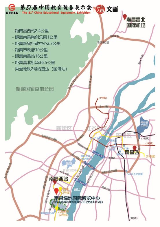 2.展示地點(diǎn):南昌綠地國際博覽中心,乘車指南、展館及賓館交通示意圖、展廳分布示意圖見附件1、2、3。