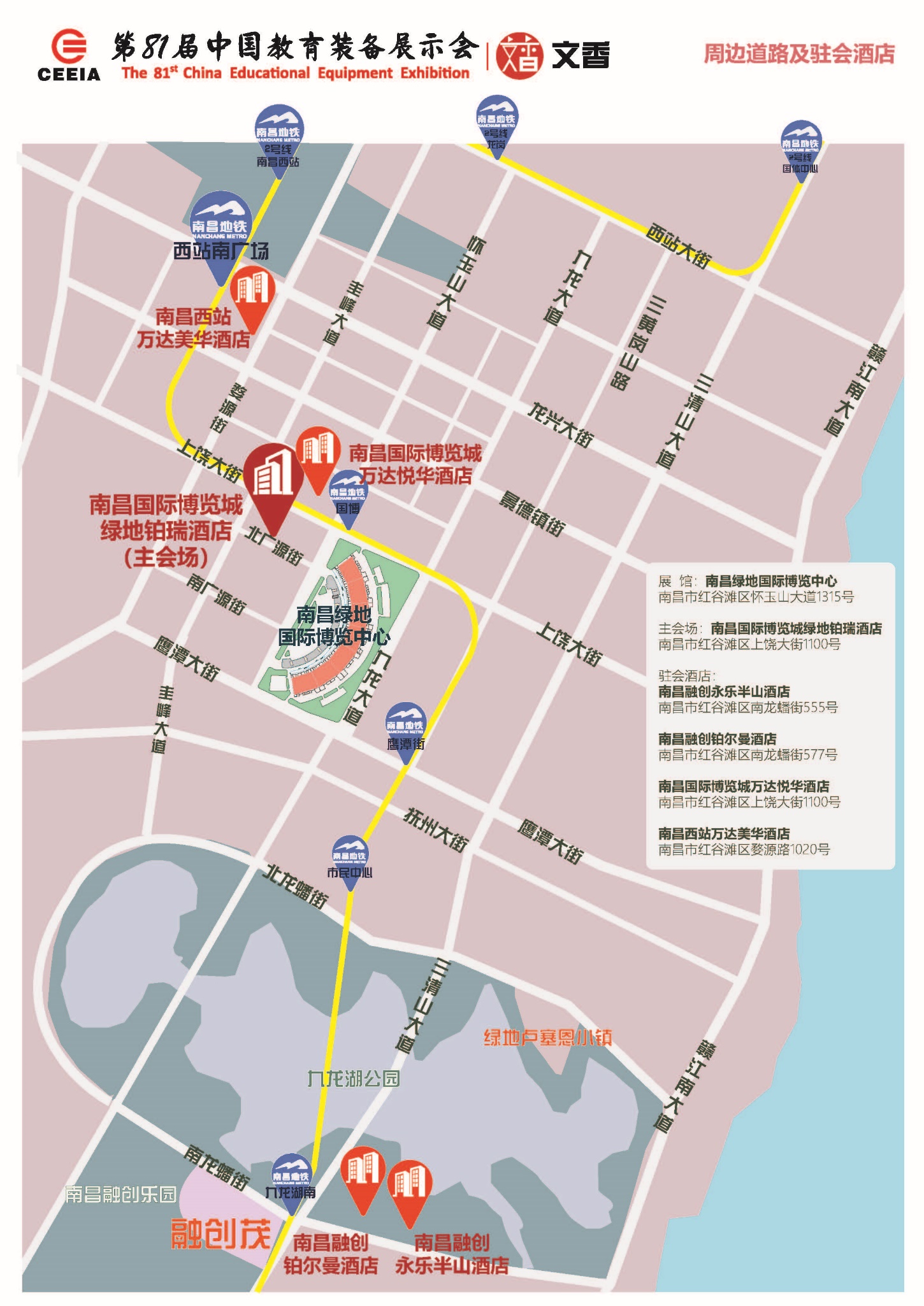 3.報到地點(diǎn):組團(tuán)單位、參展商均到南昌國際博覽城綠地鉑瑞酒店報到,交通示意圖見附件2。